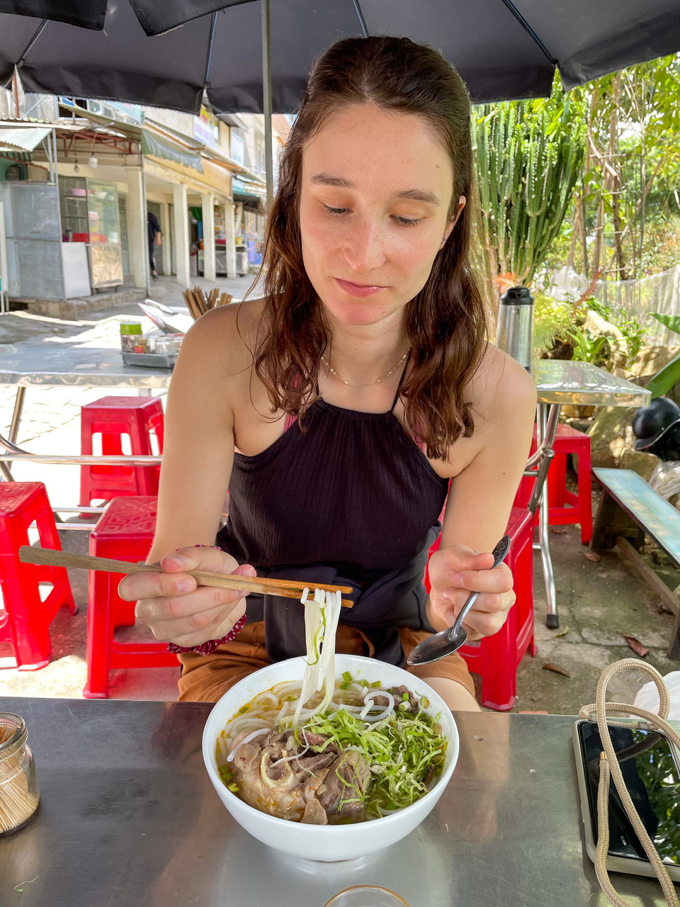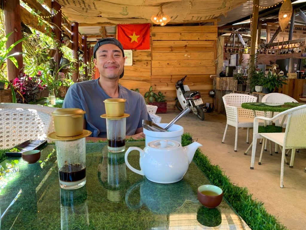 Vietnam ist außerdem bekannt für ihren leckeren Cà Phê Sữa Đá – Starker vietnamesischer Kaffee, gebrüht in einem Metallfilter mit süßer Kondensmilch und Eiswürfeln ☕️.
