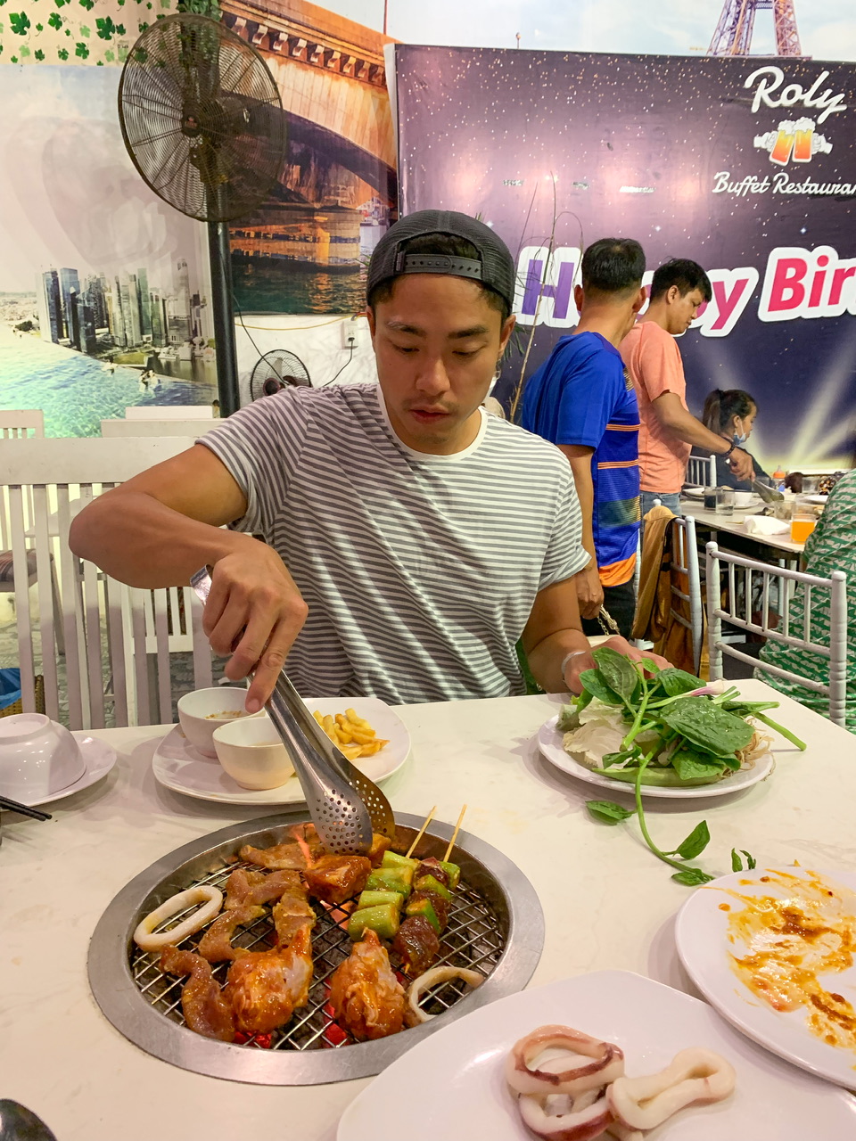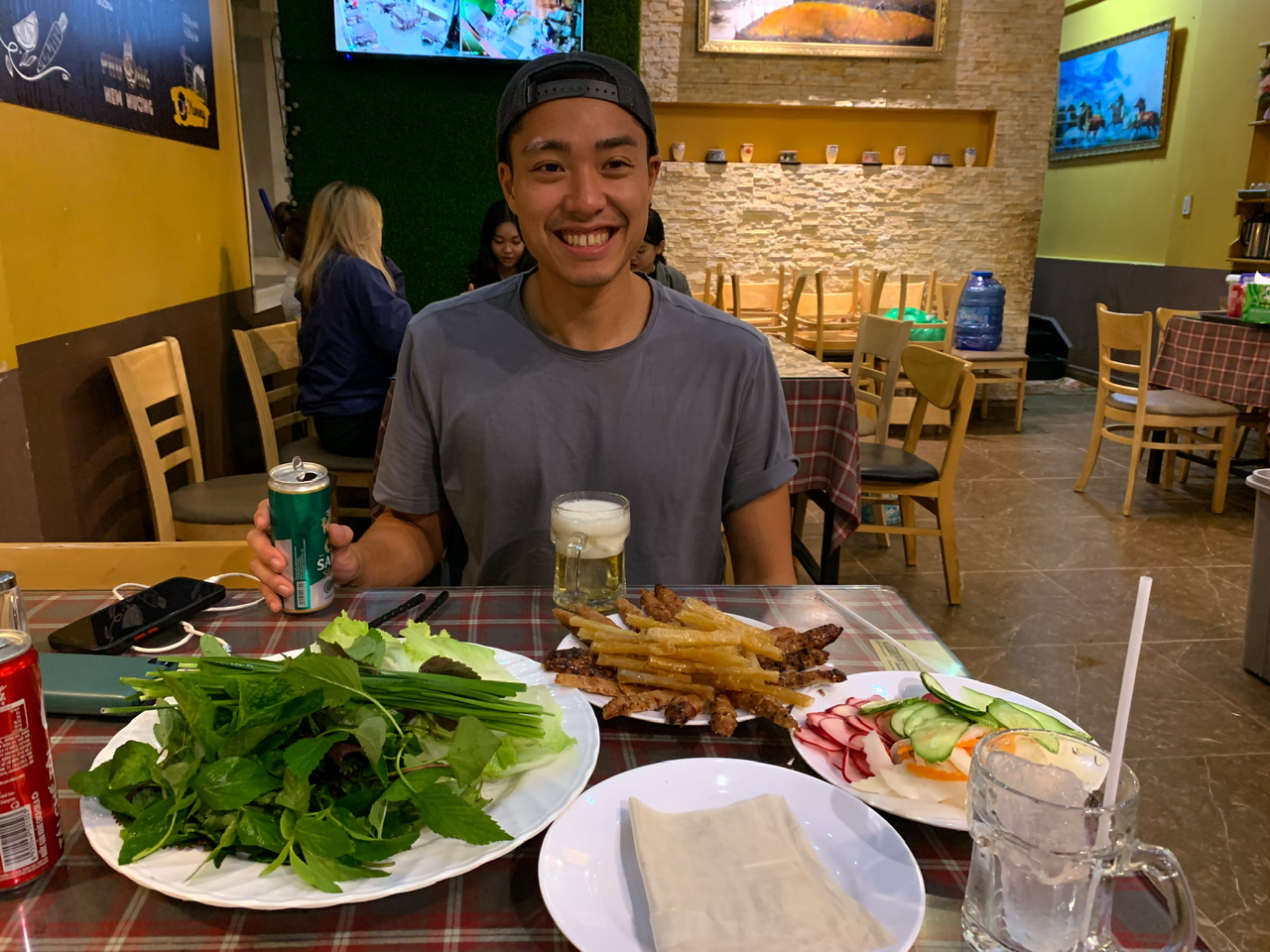 Auch die Preise für schöne Hotels waren daher sehr günstig. Wir machten uns einen schönen entspannten Tag am Strand und Pool. Wir aßen außerdem in Michis Traumrestaurant. Es gab ein Buffett mit allem was man sich vorstellen kann, mit eigenem Grill und Hotpot an jedem Tisch 😋, sogar das Bier war inkludiert 🍻.